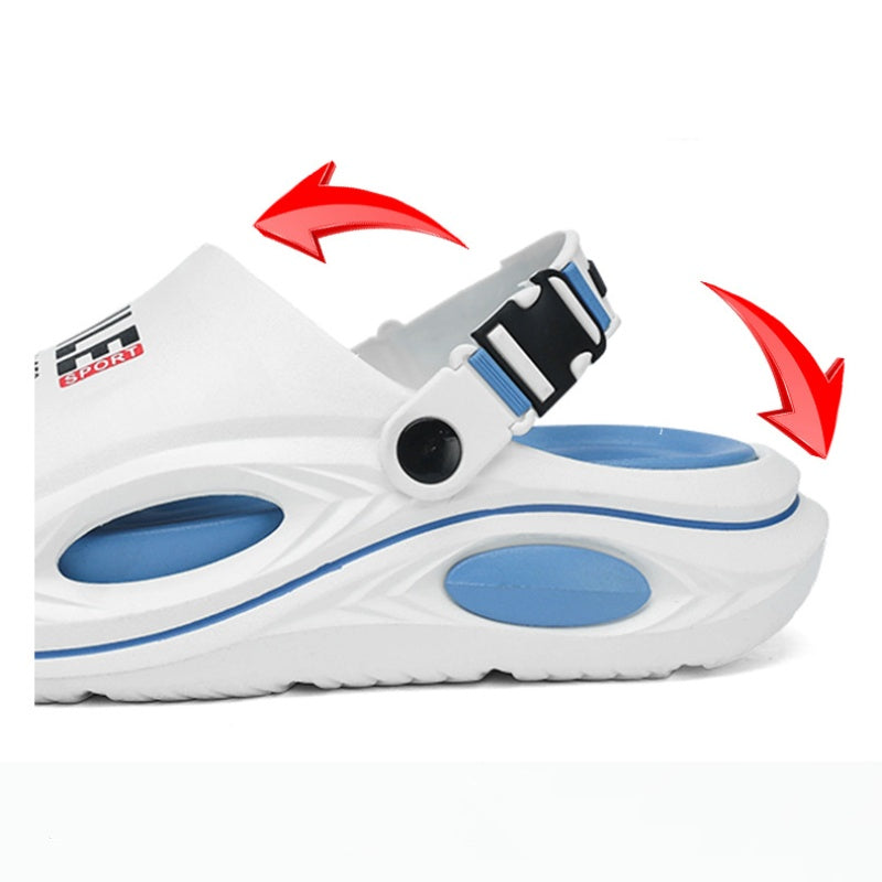 SANGLES DE TALON CONVERTIBLES : La sangle arrière réglable se transforme d'une pantoufle sécurisée en une sandale ouverte en quelques secondes. Il suffit de le replier pour un enfilage rapide ou de l'enfiler pour un soutien stable lors des mouvements actifs dans la maison.