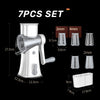 MULTIFUNCTIONAL STEEL: This rotary meat grinder set has five different blades, including a 2mm slicing knife, a 2mm fine grating knife, a 4mm coarse grating knife, a garlic grating knife and a corrugated knife. With these options, you can easily achieve different cutting styles and create a wide range of dishes.