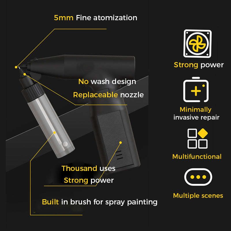 ATOMISATION PROFESSIONNELLE - Doté d'une largeur de pulvérisation de 5mm, ce pulvérisateur fournit une atomisation fine de qualité professionnelle pour une couche de peinture lisse et uniforme, garantissant des résultats de haute qualité.