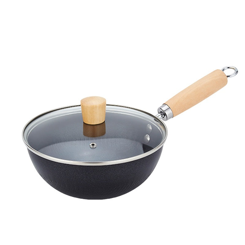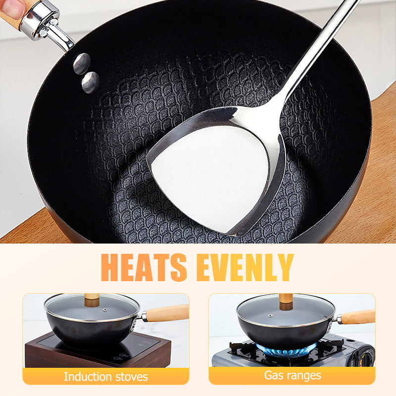 POIGNĂE ERGONOMIQUE ET LĂGĂRE  â LĂ©gĂšre et dotĂ©e d'une poignĂ©e ergonomique en bois, cette poĂȘle offre une prise en main confortable et sĂ»re. Sa conception ingĂ©nieuse facilite la manipulation et la maniabilitĂ©, rendant les longues sĂ©ances de cuisine agrĂ©ables et sans effort.