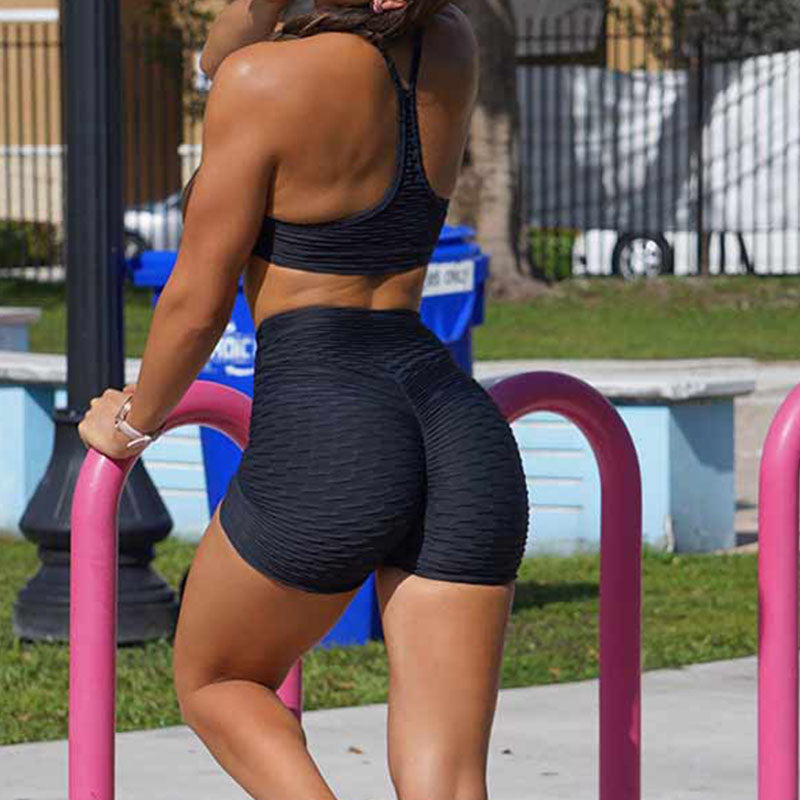 Short de Yoga à Taille Haute en Jacquard à Bulles