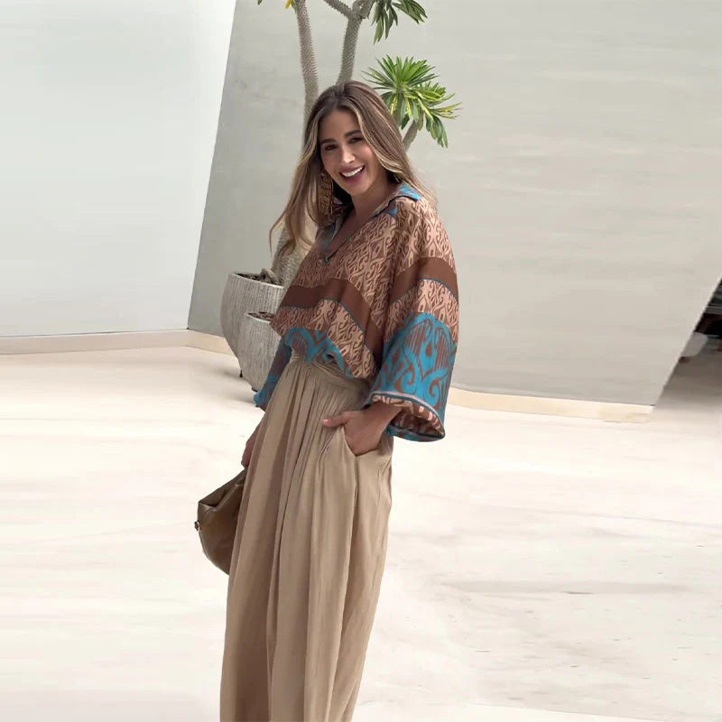 Ensemble 2 pièces - Haut Imprimé et Pantalon à Jambes Larges