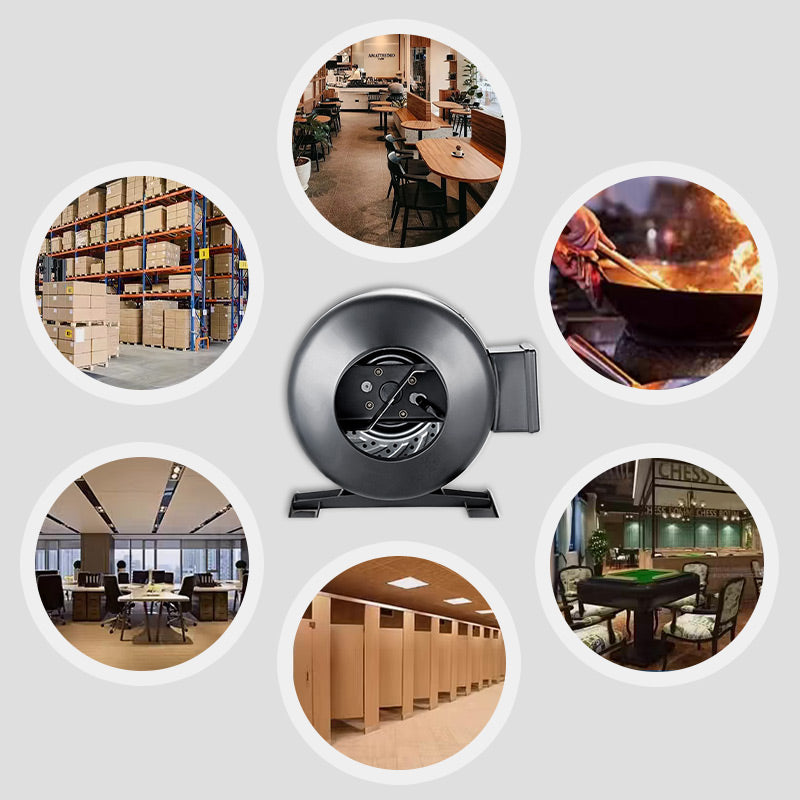 APPLICATION LARGE : Avec son design compact, ce Ventilateur de Gaine Circulaire Puissant à Faible Bruit est polyvalent et peut être utilisé efficacement dans les ateliers d'usine, les entrepôts, les bureaux, les cuisines et autres espaces nécessitant une circulation d'air efficace.