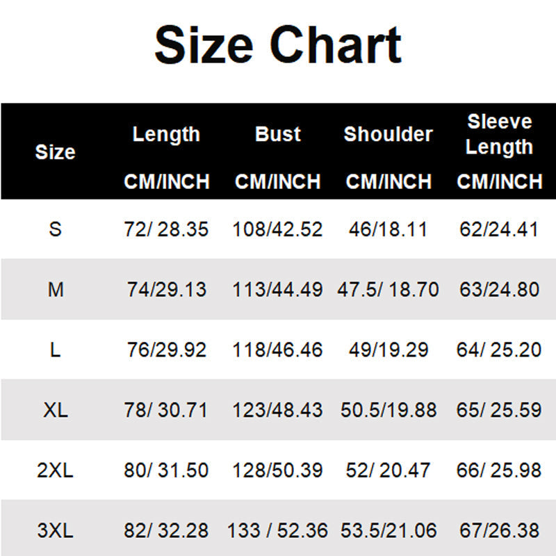 Die Größen S – 3XL sind für die meisten Körperformen geeignet. Bitte konsultieren Sie die Größentabelle, um die optimale Passform zu finden.