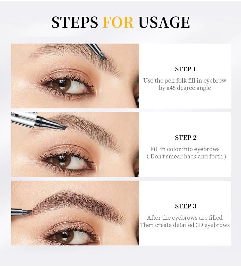 🔥Achetez 1 obtenez 1 Gratuitement🔥-Stylo à Sourcils Microblading 3D étanche à 4 Pointes de fourche pour tatouage