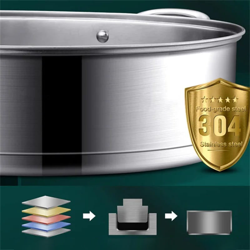 EVEN HEAT DISTRIBUTION - Made of stainless steel, thick and durable. The thickened base promotes even heat distribution, facilitating quick and efficient cooking while minimizing nutrient loss in food.