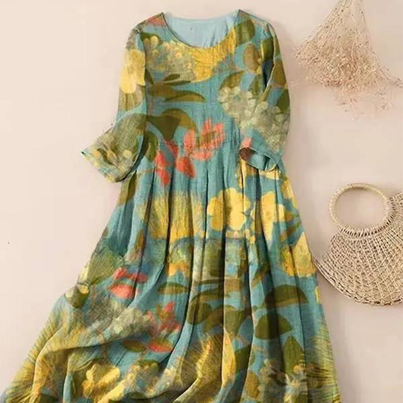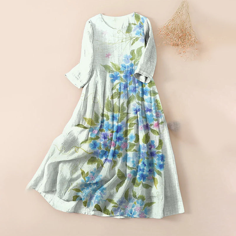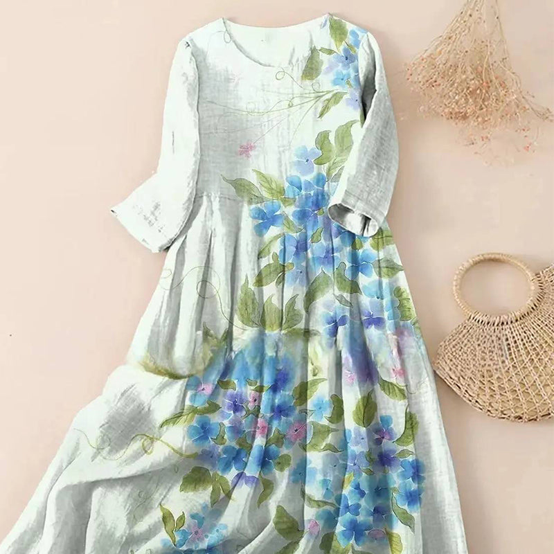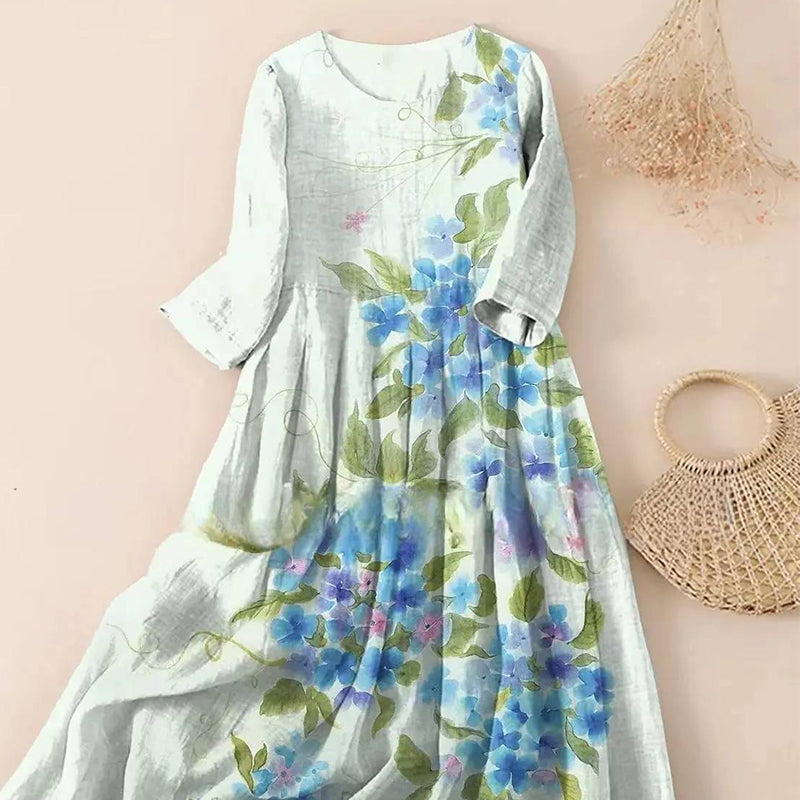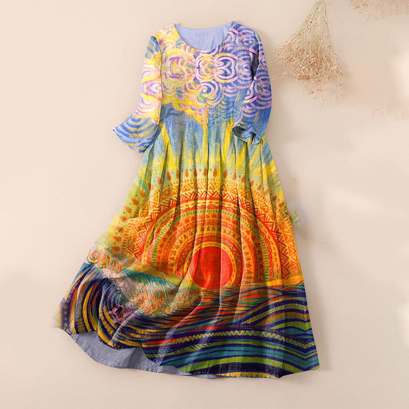 ROBE MAXI ÉLÉGANTE - Adopte un style facile grâce à cette robe maxi ample et fluide aux motifs imprimés complexes.