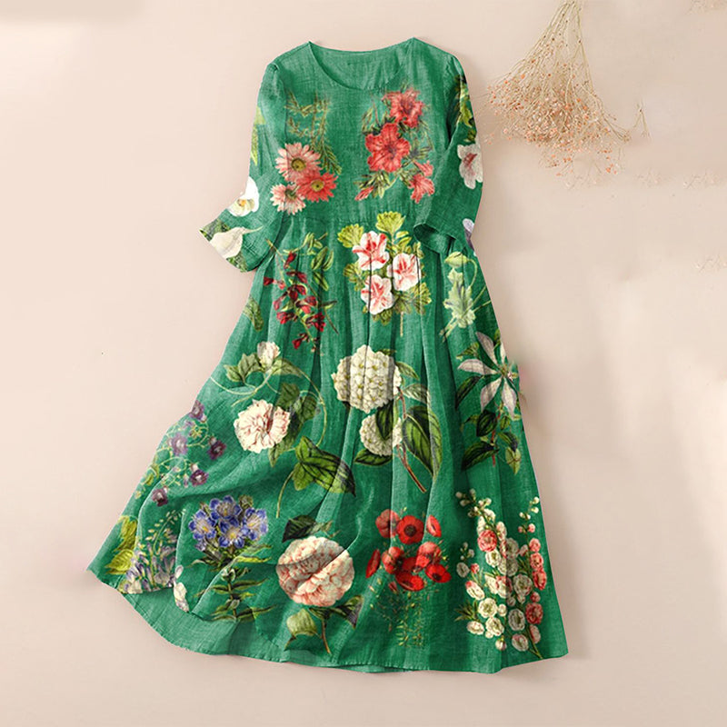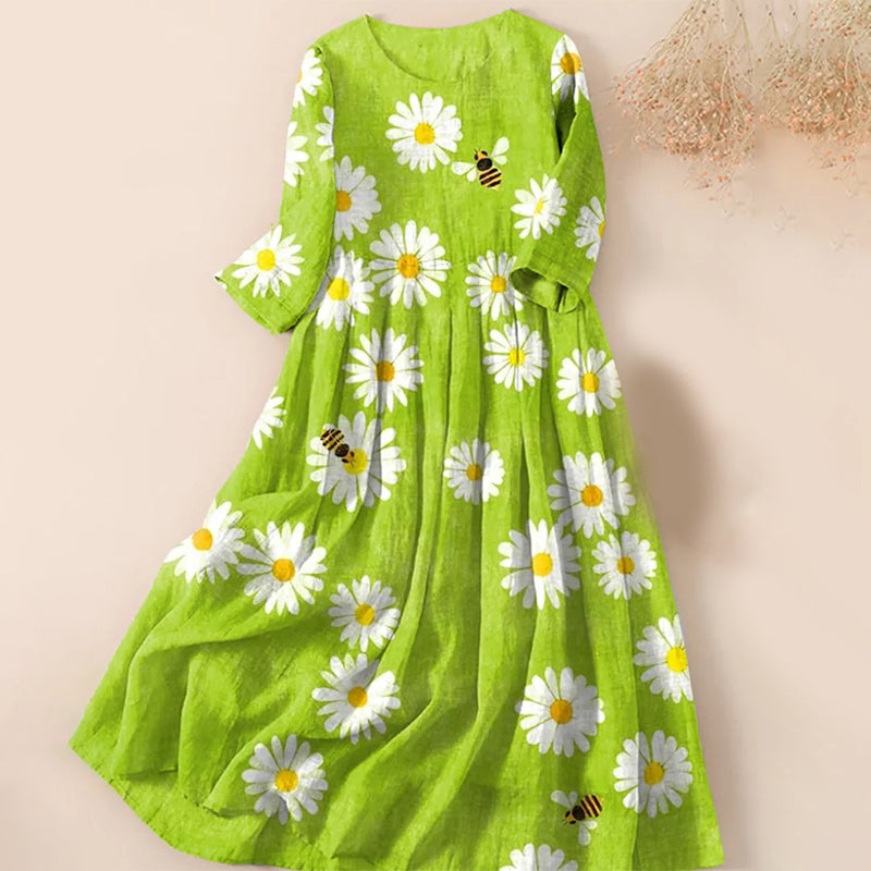 Robe Mi-Longue Imprimée et Plissée