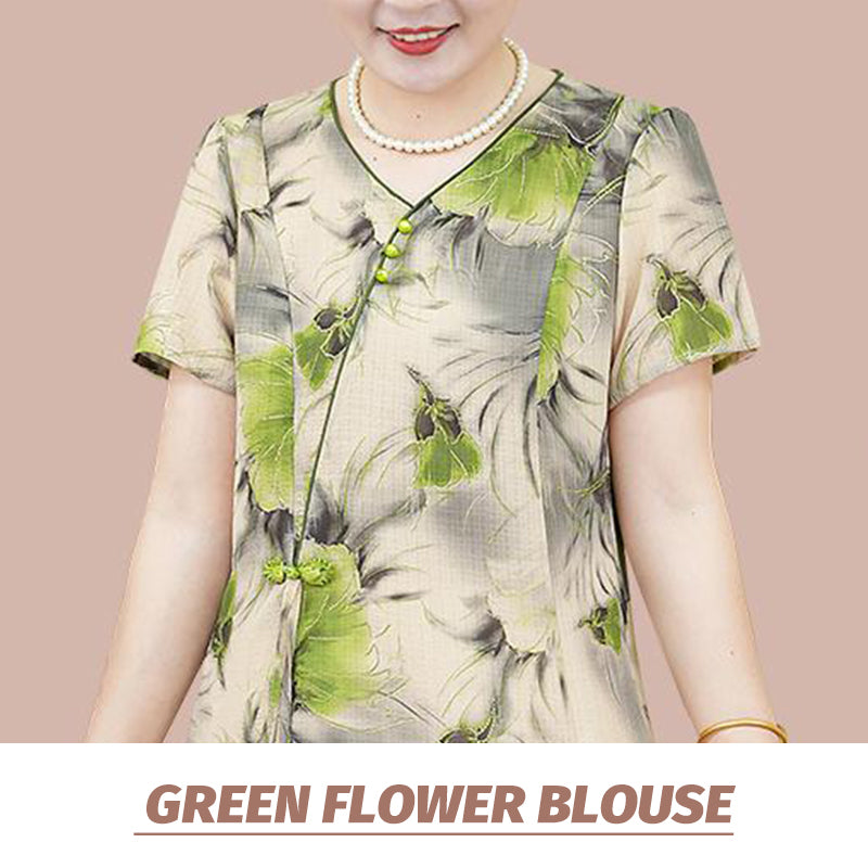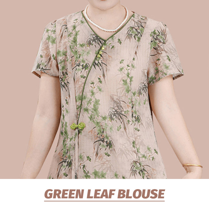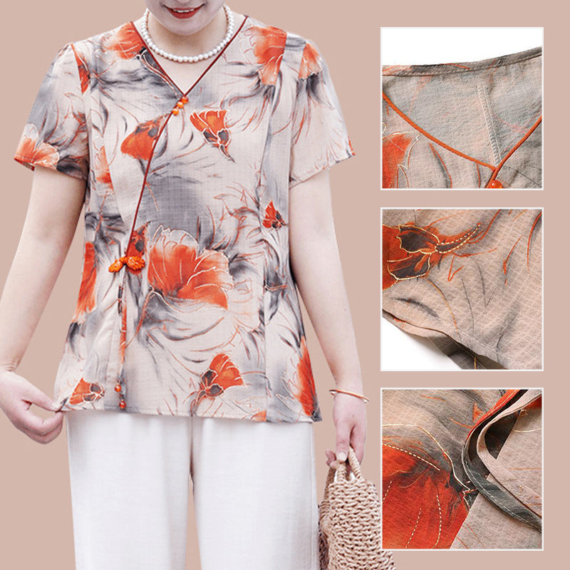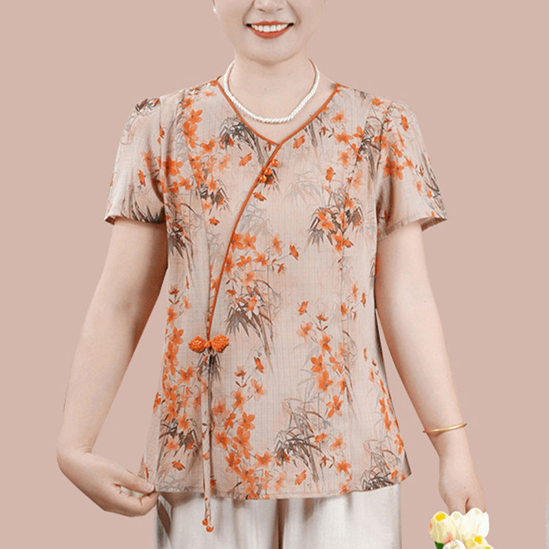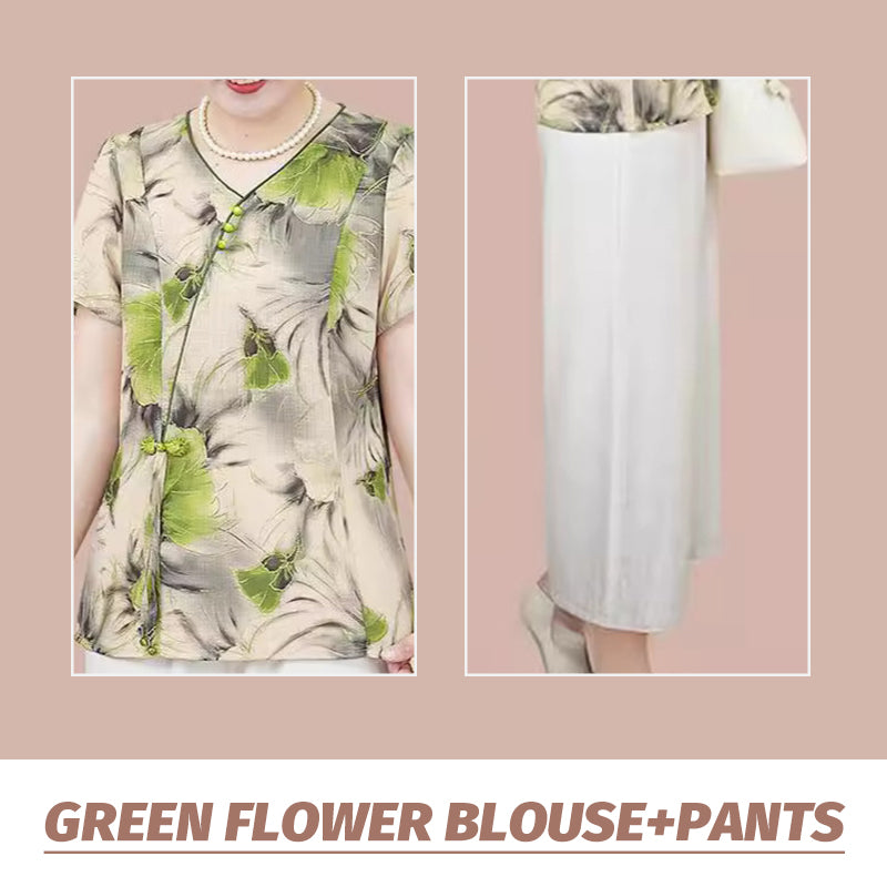 Ensemble Traditionnel Chinois de Chemisier à Manches Courtes et de Pantalon pour Femmes