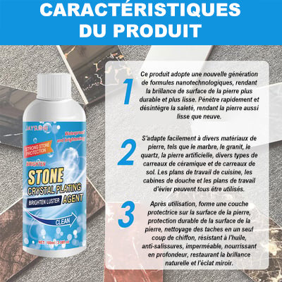 Convient pour : Sans danger pour les surfaces en pierre de haute qualité, telles que le granit, le marbre, le quartz, l'ardoise, le béton, le travertin, le terrazzo, le calcaire, la stéatite, etc.