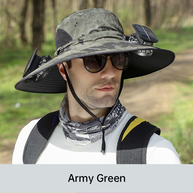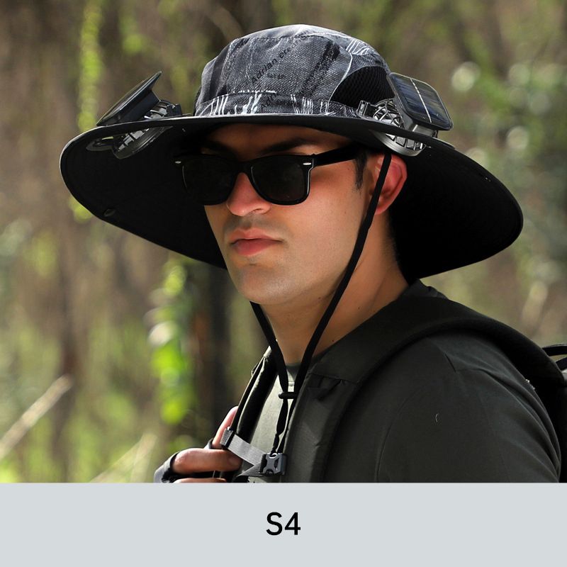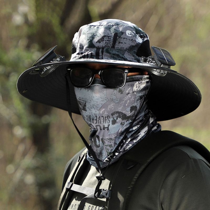 đ„Livraison gratuite â Chapeau de pĂȘche en plein air avec ventilateur solaire Ă large bord â Chargement solaire et USB.