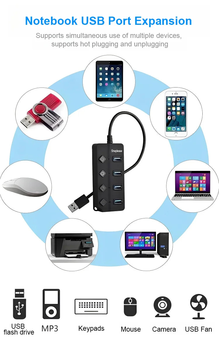 Répartiteur USB avec interrupteurs indépendants