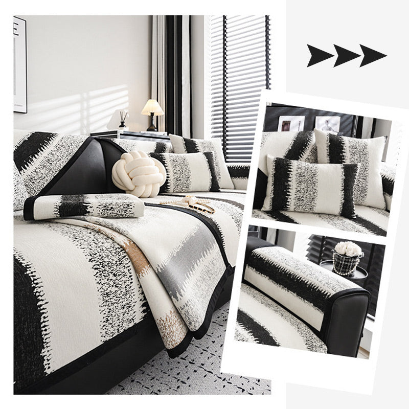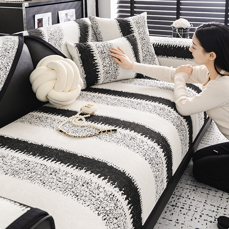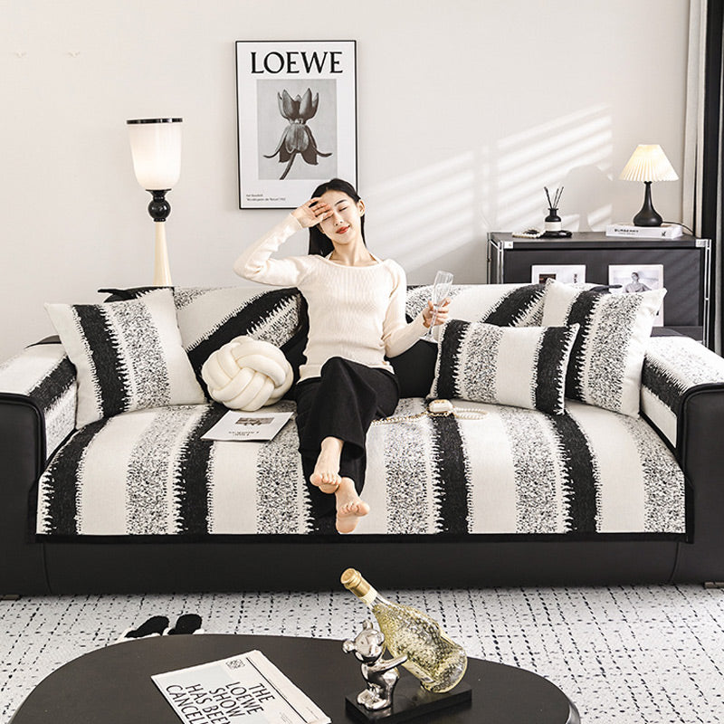 Housse de Canapé Universelle Antidérapante à Rayures (Tissu Résistant aux Taches)