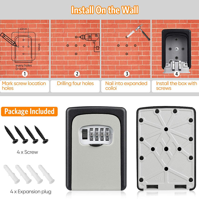 Les instructions sont très claires et faciles à suivre (kit de montage inclus). Contrairement à d'autres boîtes de fermeture à clé, notre boîte de fermeture à clé de sécurité ne se bloquera pas au cours de l'opération en raison de sa qualité de fabrication. Il est facile de l'ouvrir avec la bonne combinaison en 2 secondes.