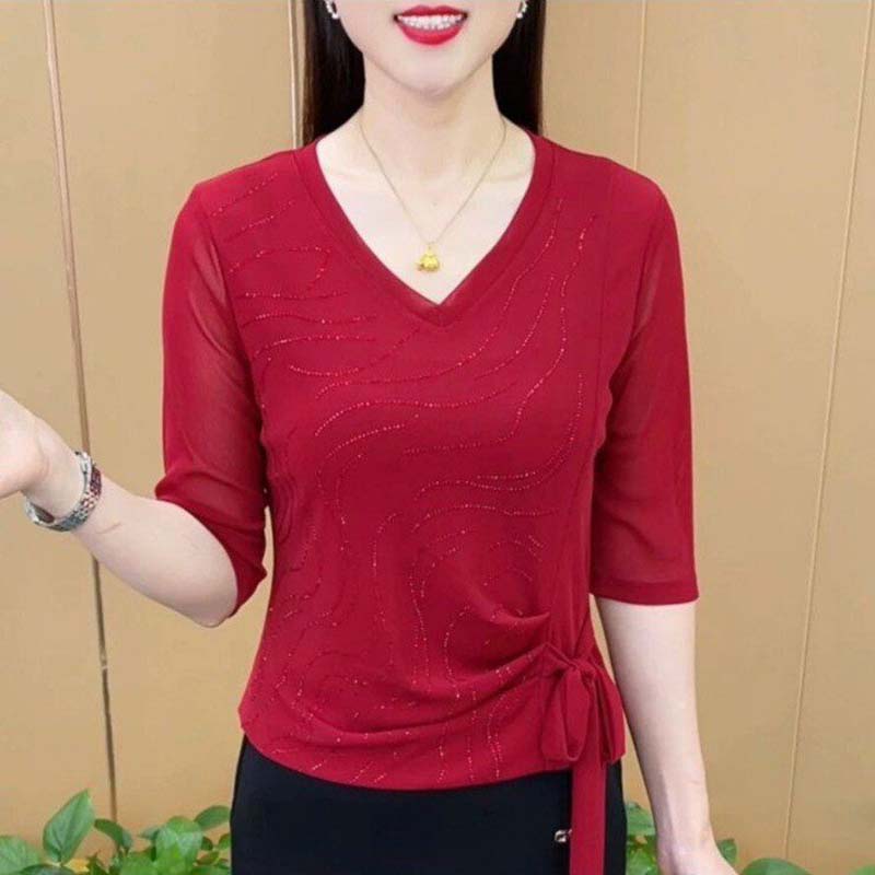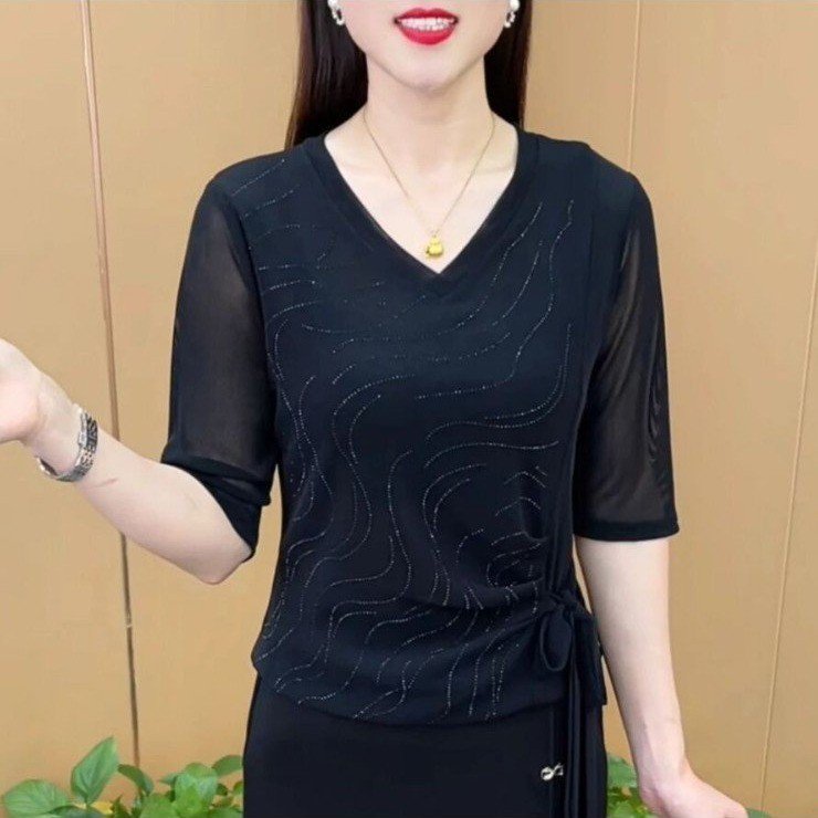 Chemisier Élégant à Col en V avec Manches Transparentes