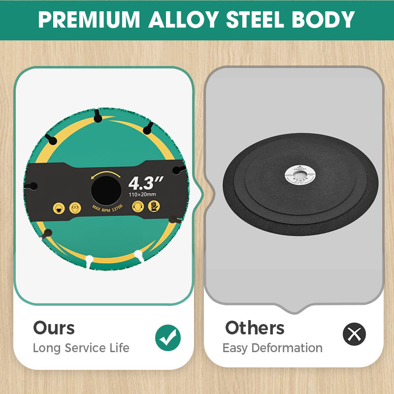 ACIER ALLIÉ PREMIUM – Fabriqué à partir d'acier au manganèse de haute qualité et de grains de carbure, pour une résistance, une résistance à la chaleur et une protection supérieure contre l'usure. Fiable pour une efficacité de coupe durable.